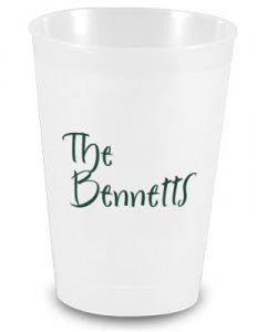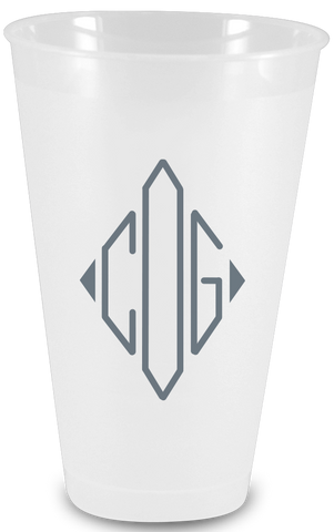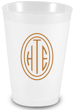 Our custom frosted plastic cup is the classiest choice for fancy to-dos, or fancy-ing up the informal. Need a hostess gift? Just add a monogram, family or house name. Personalized frost flex cups are shatterproof and top rack dishwasher safe. Now available in multiple colors.