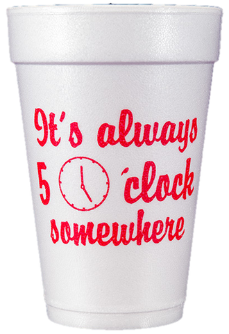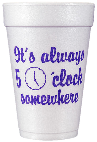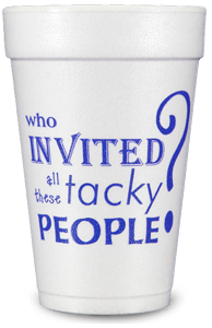 Plain styrofoam cups or professionally designed party ready styrofoam cups? There's no comparison. So what do you want printed on your styrofoam cup? Something zippy and quippy ("Weekend Waterford" or "Enough with the juice boxes Mommy needs a cocktail")? Perhaps you're throwing a bachelor, bachelorette or birthday party. Or you might just want a pretty or pretty neat design with no words at all. These and other compelling themes and ideas make up our pre-printed styrofoam cup stock design collection, all professionally designed. You have options. Lots of them. And we've made them easy to navigate, because online scavenger hunting is no fun. Our stock design styrofoam cup designs fit specific occasions. Others are perfect for keeping cool cups around at home or at your weekend pad. We even have college themed designs (like "Sooner Suds" and "Tiger Tonic"). No matter what you order, a sleeve of ten high quality 16 oz cups will arrive professionally printed and carefully packaged. Simply browse, select a design, hit the old clickaroo and you're done.